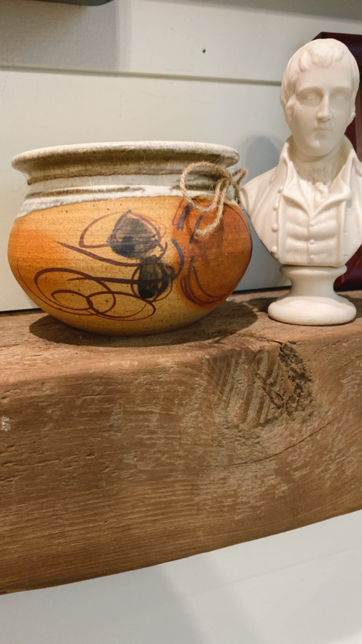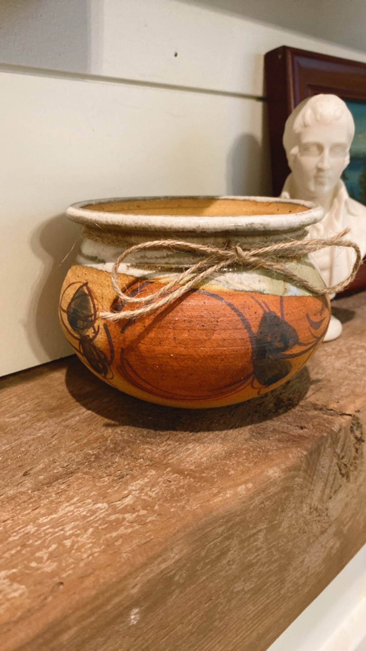 Clara. This beautiful hand thrown piece of pottery was a honey pot in her former life. Unfortunately, the lid was shattered in transit. She sat tucked away a few weeks while I absorbed the disappointment. Then I realized she is exactly why I stared making Heirloom Candles!! Filled with 10.2oz of Sweater Vest, she is shining again in her new role as a lovely repurposed candle.