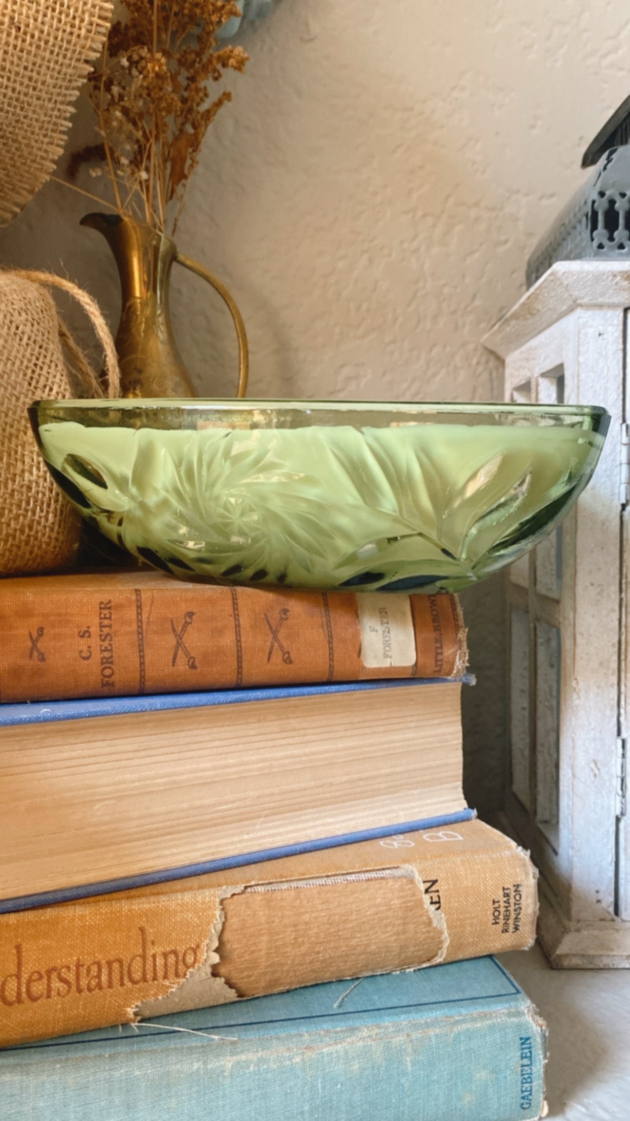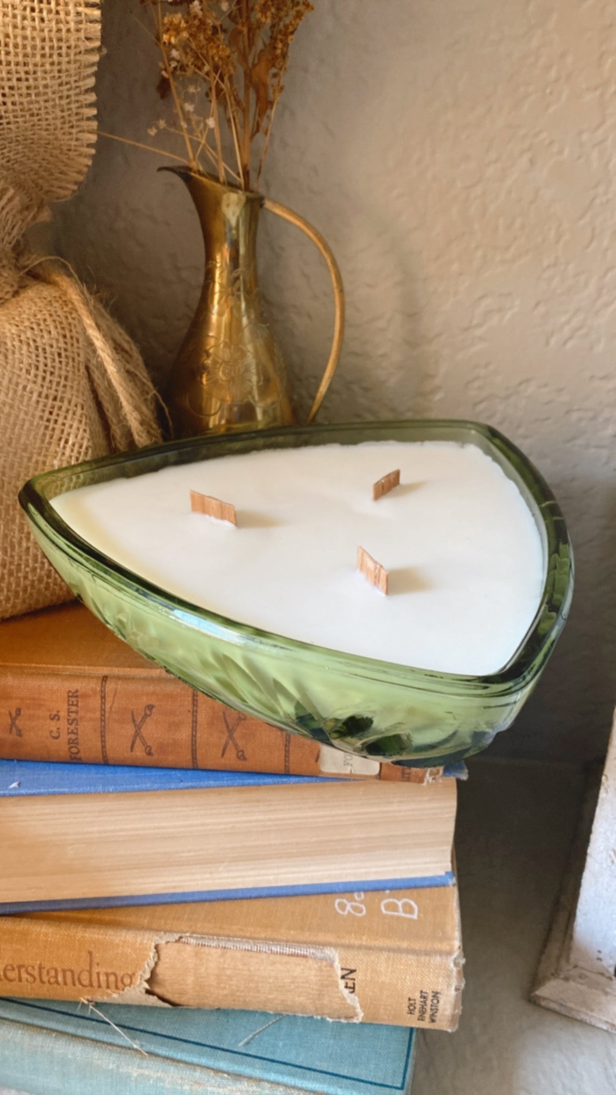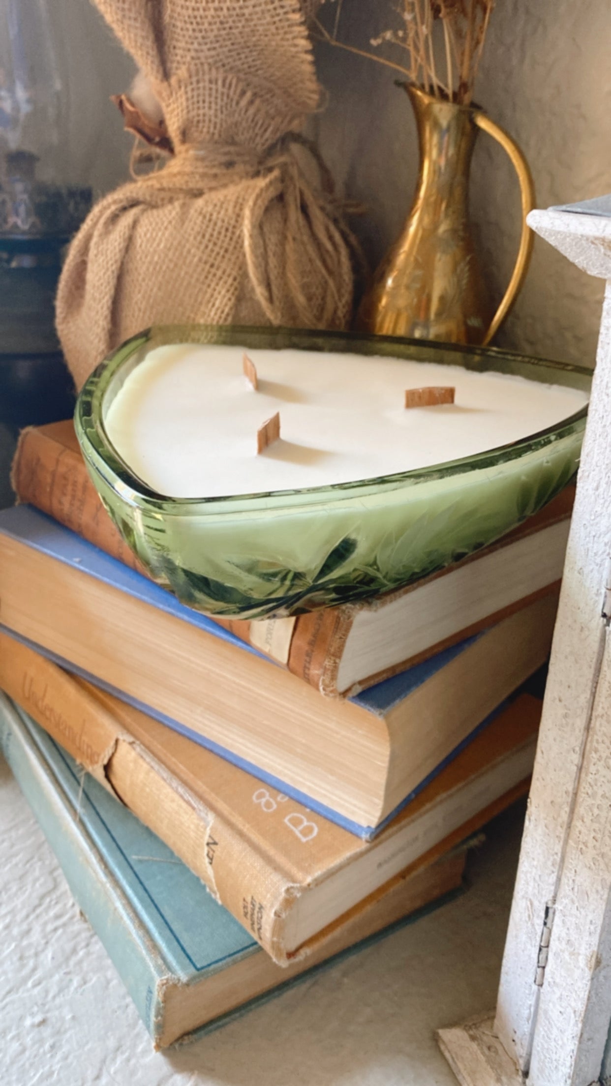 Reece is a classically beautiful Mid Century Hazel Atlas Bowl. Filled with 13.6oz of Dear Diary, this lovely avocado green bowl is perfect on its own but would mix seamlessly with any current decor.