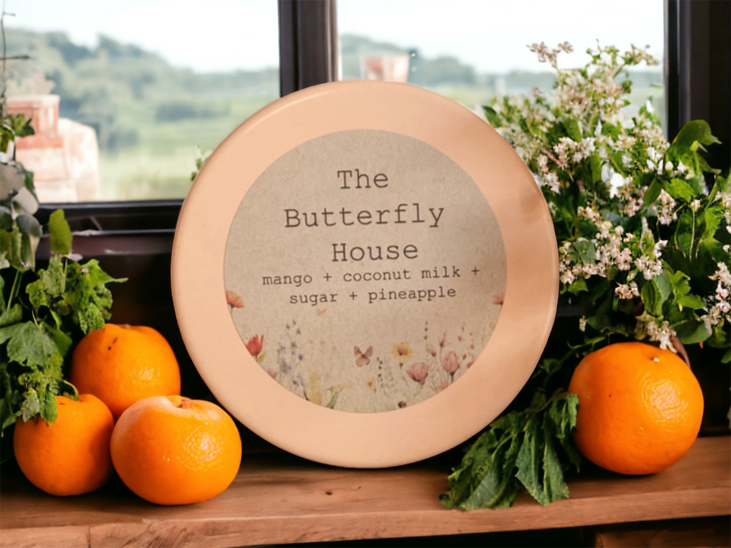 The Butterfly House after an amazing landmark property in Pacific Grove, California. Known for the yearly migration of monarch butterflies to this beautiful town, one house stands out from the rest! This coastal cottage is as unique as the candle scent that I named it after. It’s adorned with butterflies of all shapes and sizes. Huge statues, mosaic tiles and hand painted splendor make it a must see. It brings joy and represents this sweet little town (and the butterflies that love it) perfectly.