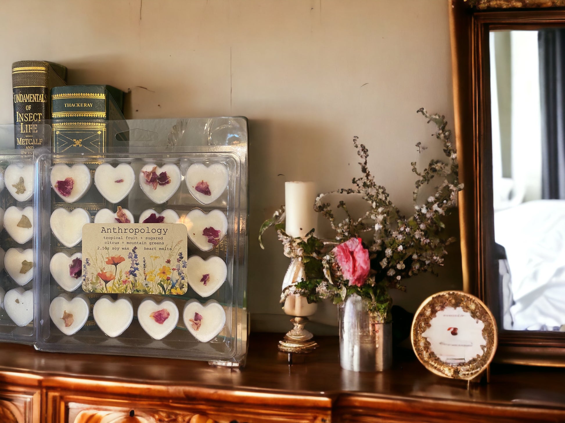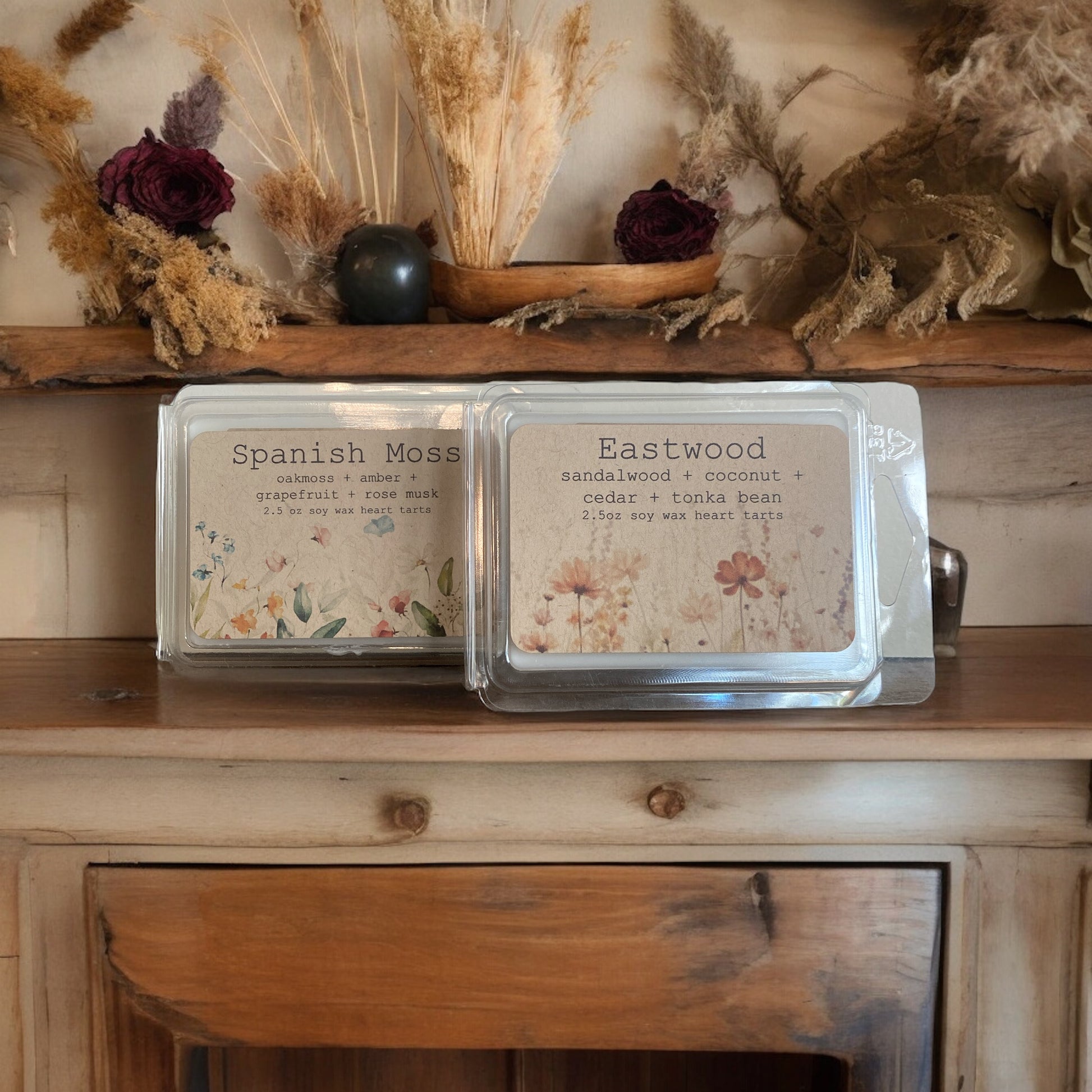 Envelop your home with lovely fragrances without the flame!! Our Natural Coconut + Olive Oil Wax Tarts are comprised of the same 100% clean materials as our candles!! Not to mention, melting a few heart shaped tarts could be seen as emotionally therapeutic!!